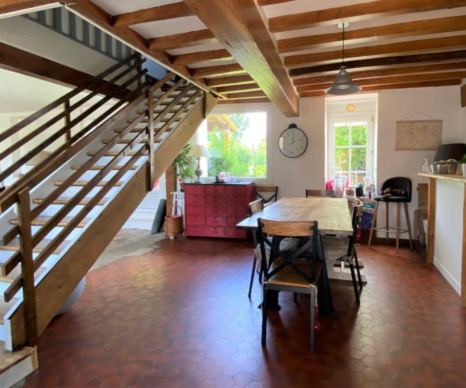 8 minutes HOUDAN~Dans village avec écoles et commerces, maison ancienne comprenant entrée dans véranda, séjour avec cheminée, cuisine américaine aménagée, salle de douche, wc, buanderie.~Au 1er étage : palier, 2 chambres, bureau, salle de bains avec wc.~Au 2nd étage : pièce palière, 2 chambres dont une avec salle de douche.~Dépendance comprenant chambre, salle de douche, wc. Grenier (chambre possible).~Atelier, carport 2 voitures, cave.~Terrain clos d'environ 1 100 m².~Réf 4100
