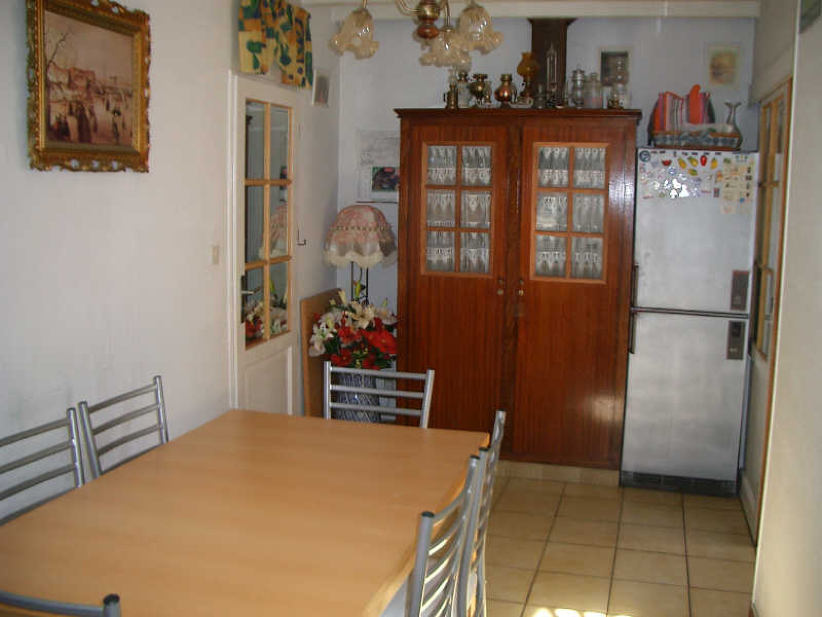 Maison de ville comprenant entrée, salle à manger, salon, cuisine aménagée, wc, chambre avec salle de douche et wc.~A l'étage : palier, 2 chambres, salle de douche avec wc, bureau.~Garage. Terrasse.~Toutes commodités sur place.~Réf 1765