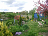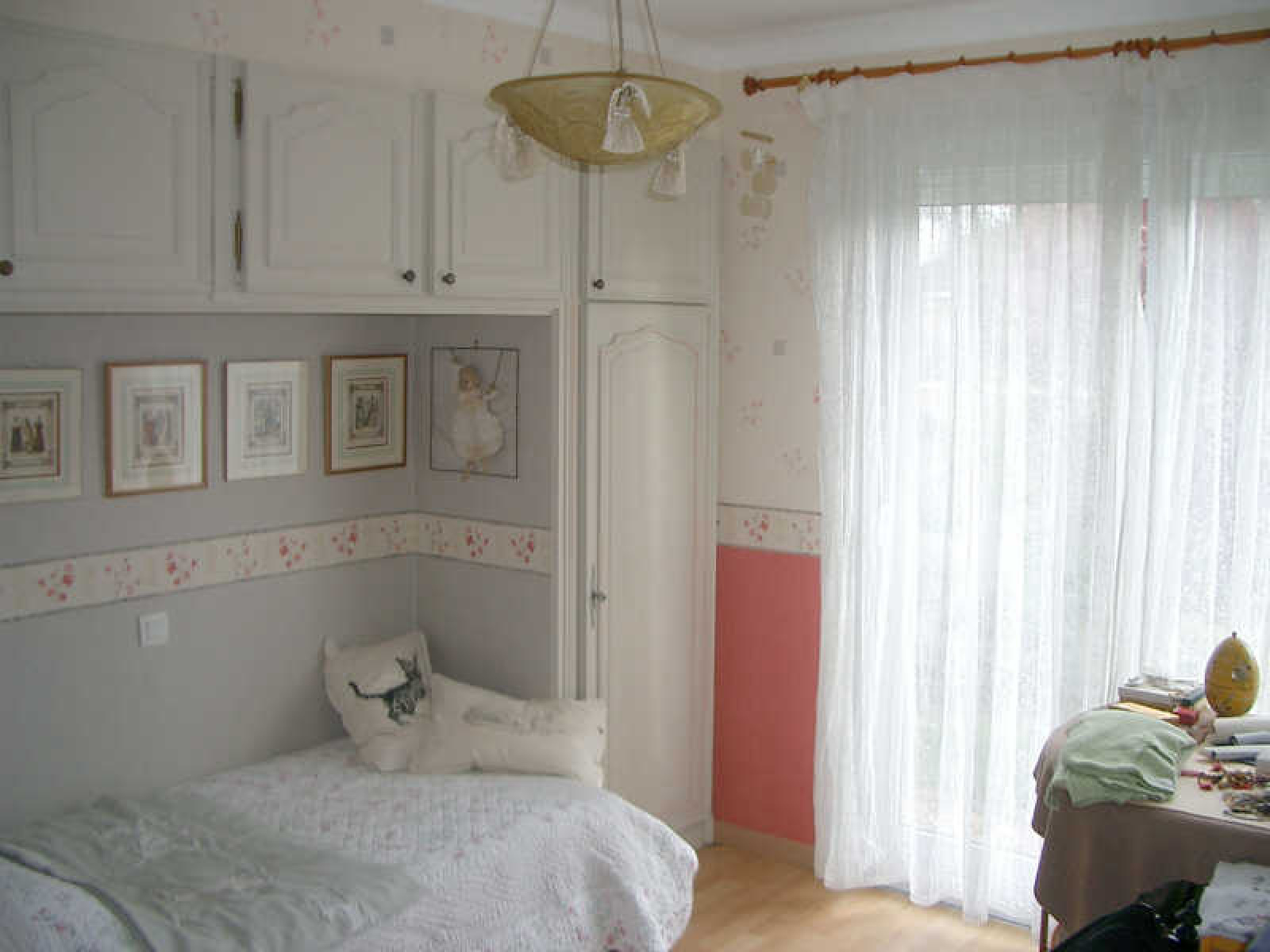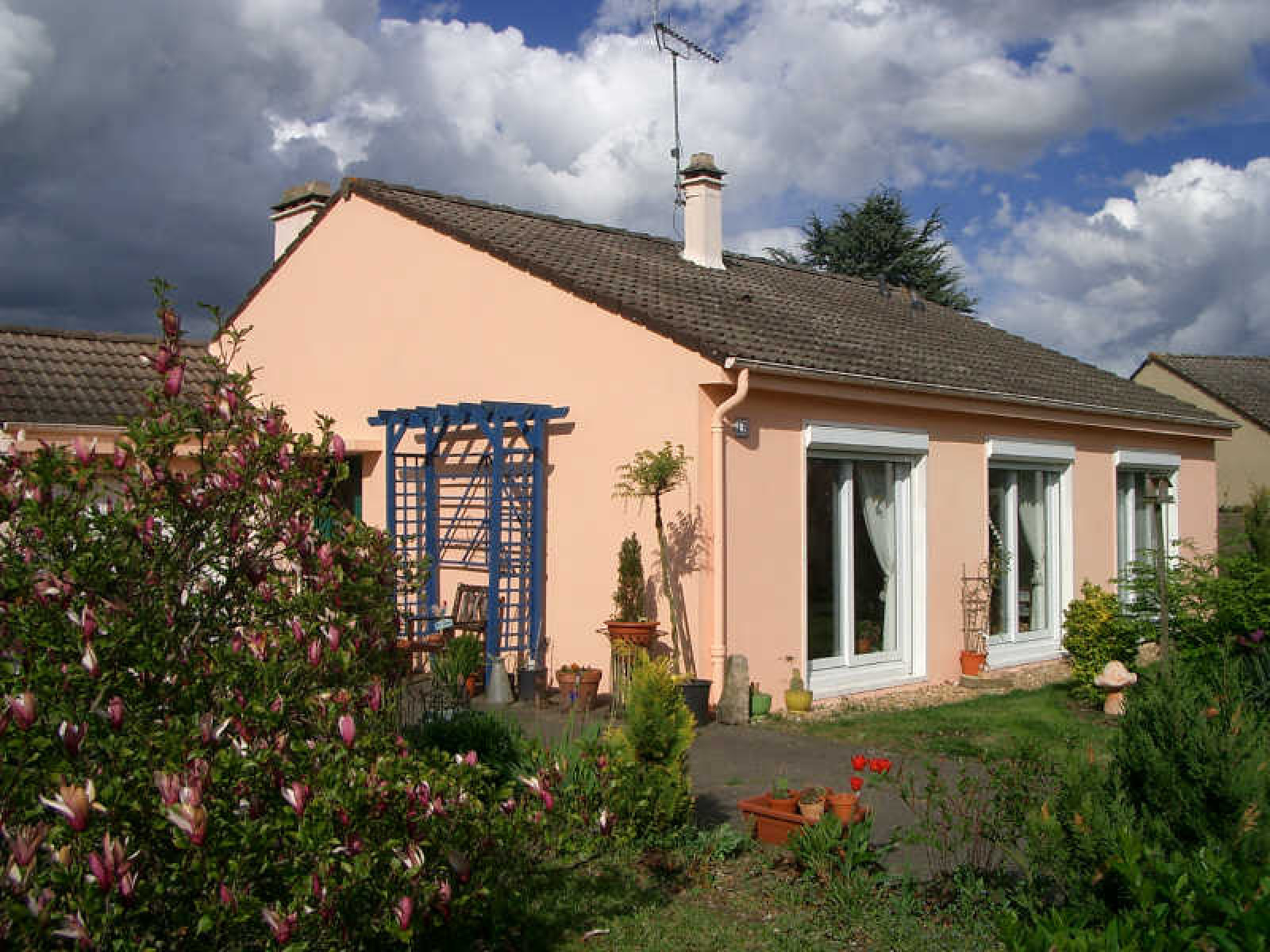 Pavillon de plain-pied comprenant entrée avec placard, cuisine aménagée et équipée, séjour (conduit de cheminée existant), 3 chambres, salle de bains, salle de douche avec wc.~Garage. Chalet. Joli terrain clos d'environ 800 m².~Ecoles, commerces et gare à pied.~Réf 775