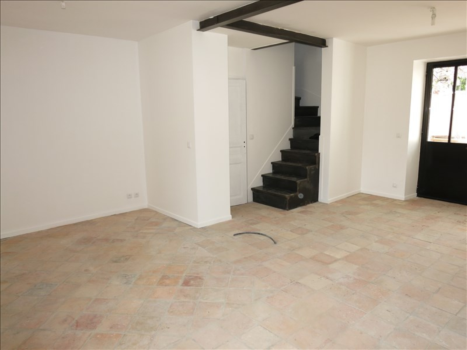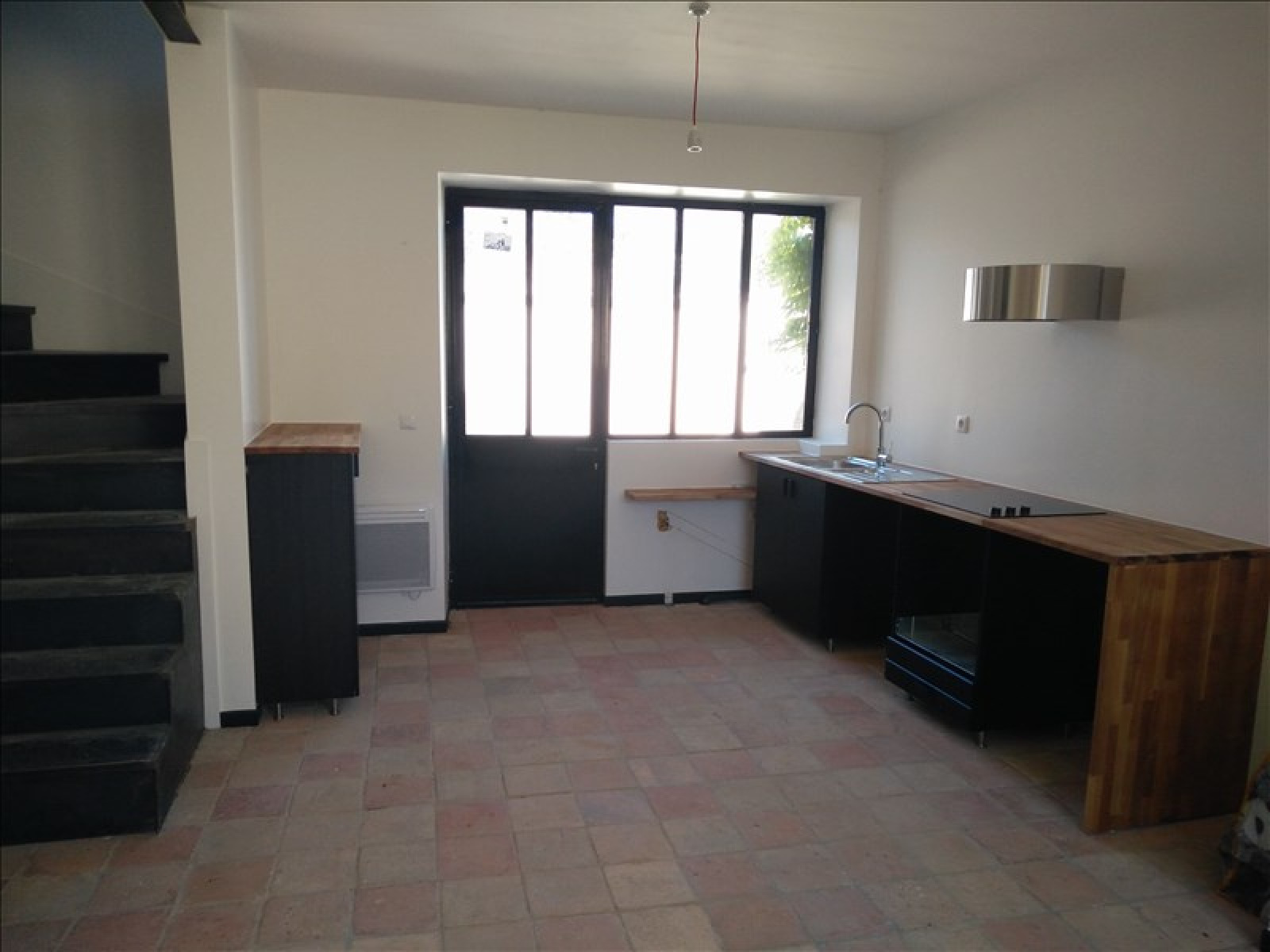 Maison de ville rénovée en plein centre ville comprenant séjour lumineux, cuisine américaine aménagée, wc.~A l'étage : palier, 2 chambres, salle de bains, wc,chambre dans les combles.~Jardin clos avec terrasse. 2 places de parking.~Toutes commodités à pied.~Réf 3361