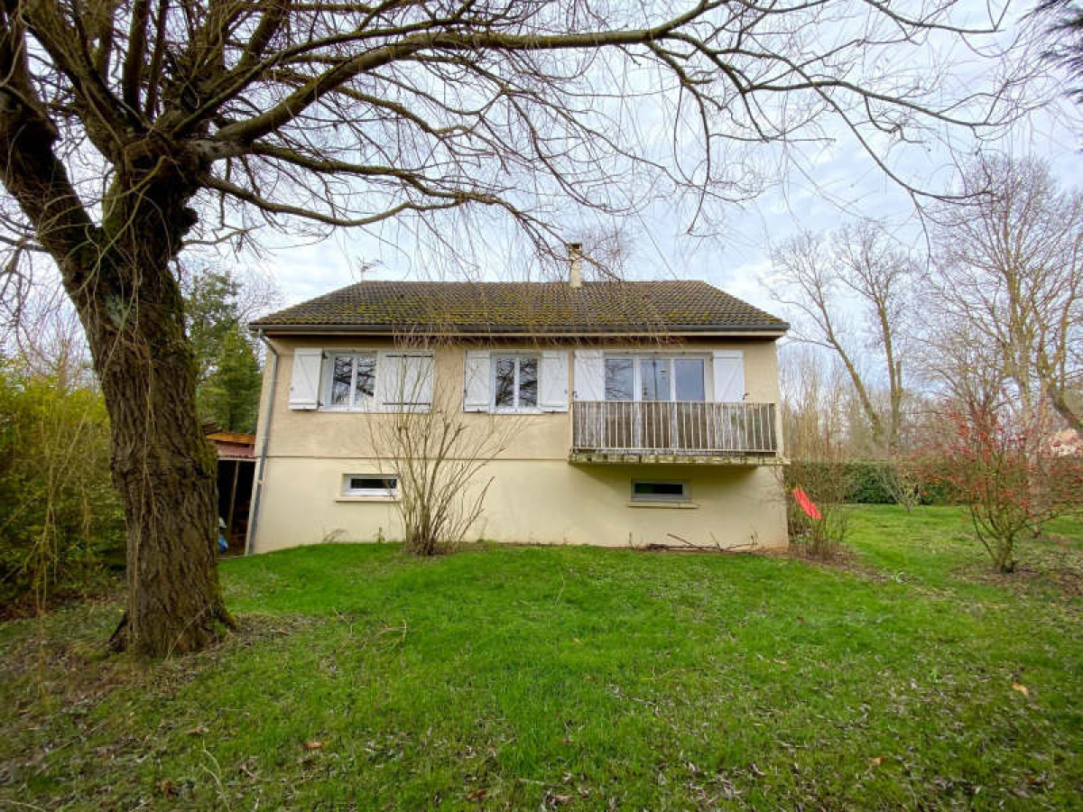 5 minutes HOUDAN dans le 78~Pavillon comprenant entrée, séjour avec cheminée insert, cuisine aménagée et équipée, 3 chambres, salle de douche, wc.~Sous-sol total semi-enterré comprenant chambre avec dressing, bureau, buanderie, garage.~Terrain clos d'environ 880 m² avec chalet.~Réf 4057