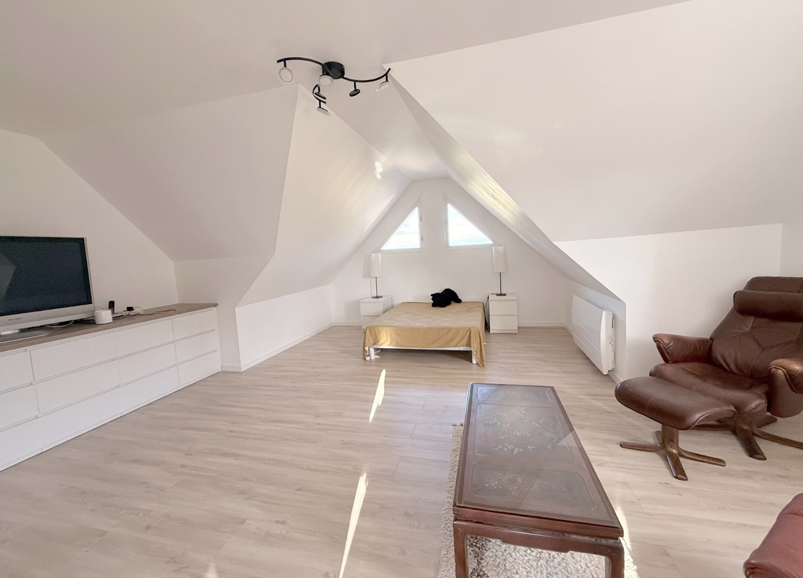 Grand garage d'environ 72 m² pour 6 voitures. Grenier aménageable au-dessus (environ 35 m²).