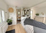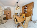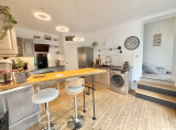 Maison ancienne restaurée comprenant entrée, séjour double, cuisine aménagée avec coin repas, chambre, salle de bains avec wc.