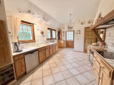 Maison d'habitation comprenant entrée avec placard, grand séjour avec cheminée, cuisine aménagée avec coin repas, arrière-cuisine, chambre avec salle de douche, wc avec lave-mains, cave.