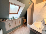 A l'étage : grande pièce palière, bureau (ou dressing), salle de douche, wc, trois chambres dont une avec salle de douche et placard.