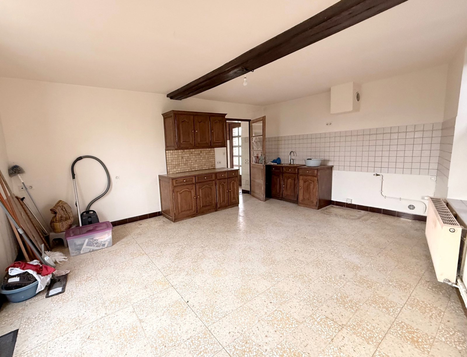 Maison ancienne comprenant grande cuisine, salon salle à manger, une pièce, salle de douche avecc wc.