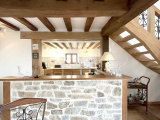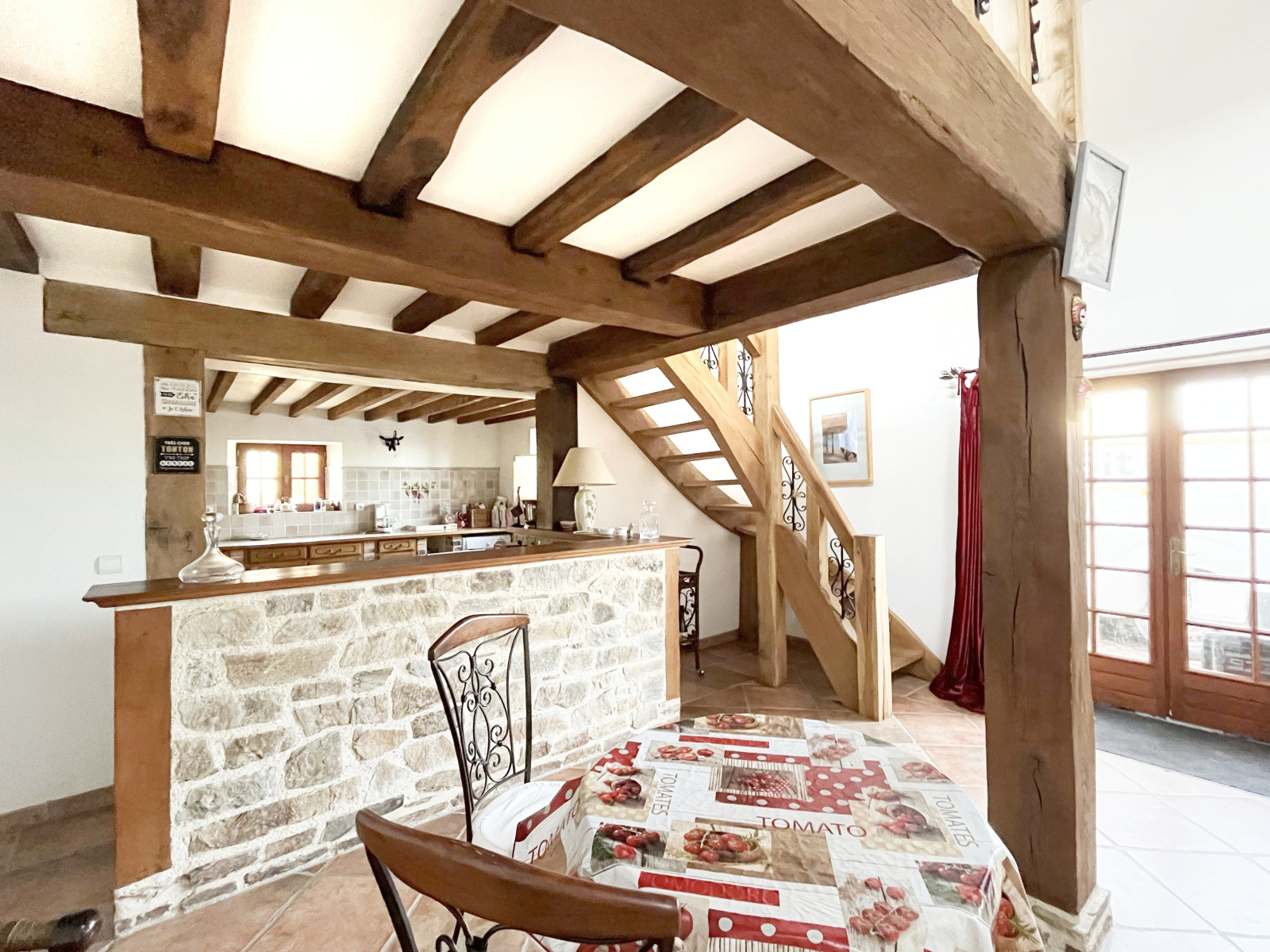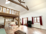Maison ancienne d'habitation comprenant entrée, séjour cathédrale avec cheminée, cuisine américaine aménagée avec bar, wc, grande chambre, salle de bains avec wc. Mezzanine avec partie bureau et chambre.
