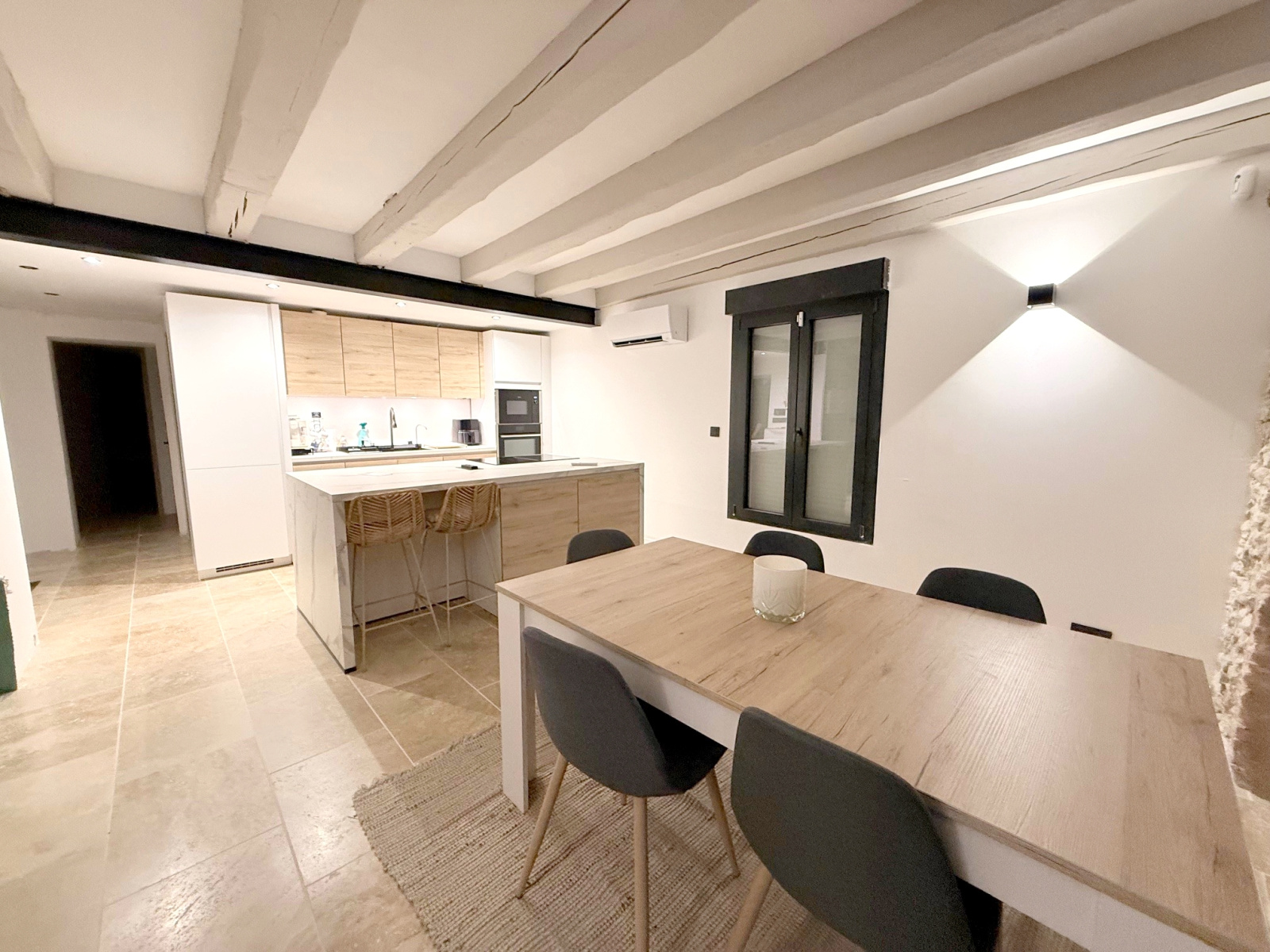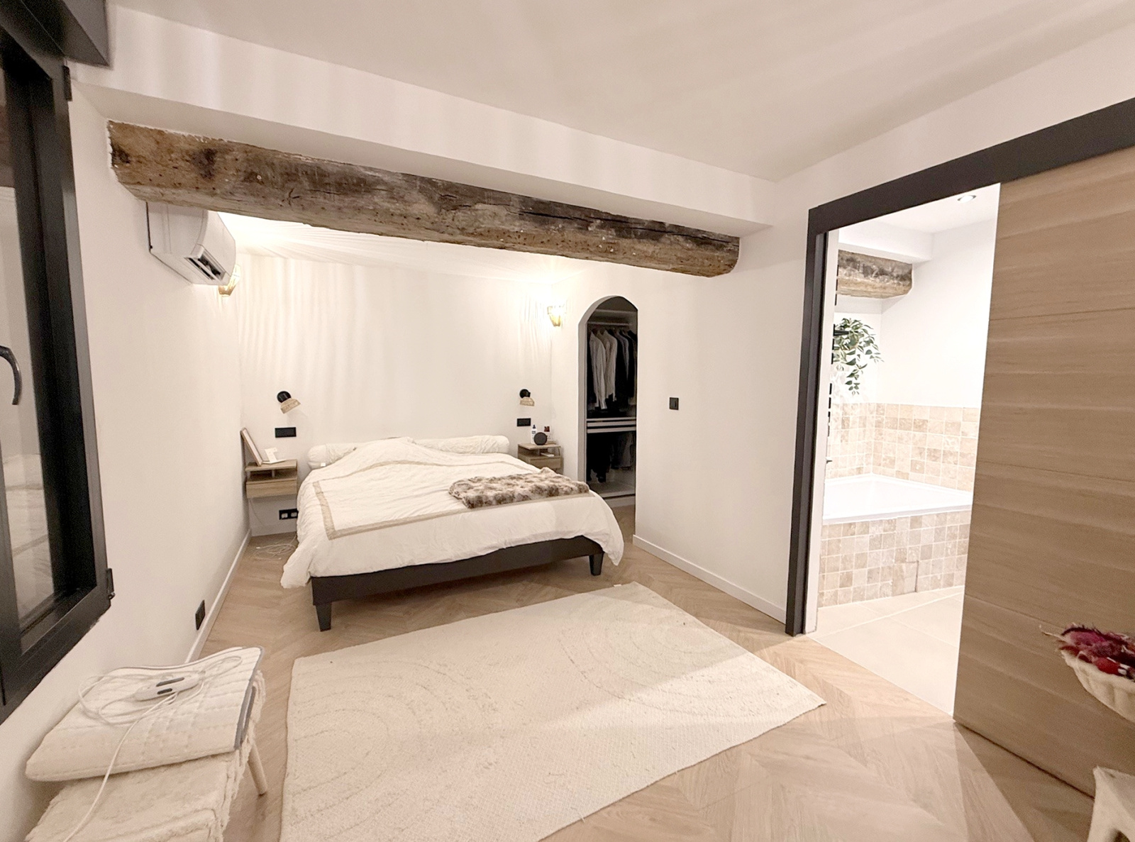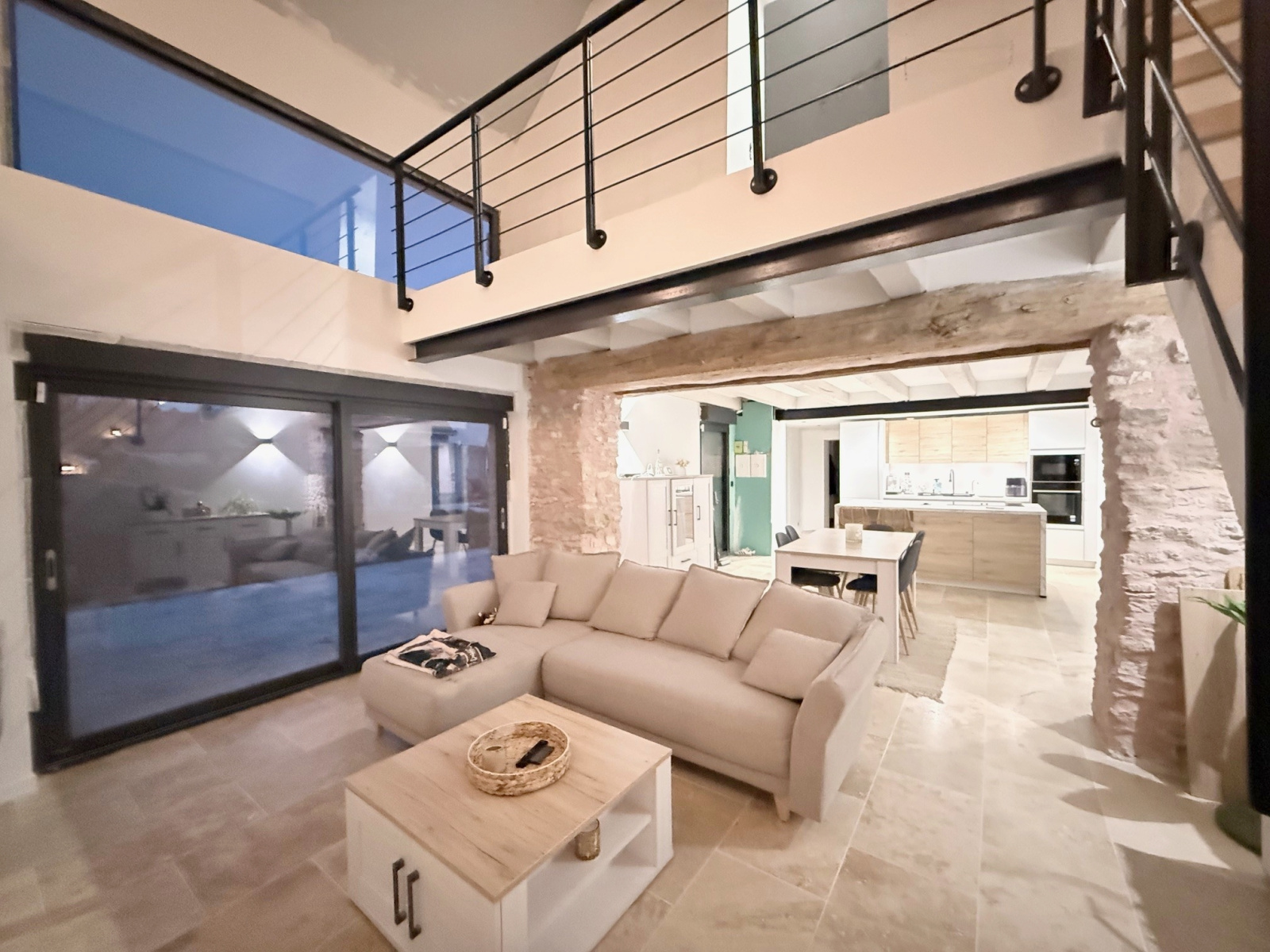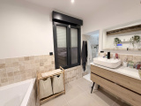Maison ancienne comprenant entrée, grand séjour en partie cathédrale, cuisine américaine aménagée et équipée, suite parentale (chambre, salle de bains avec douche à l'italienne, dressing), wc avec lave-mains, buanderie.