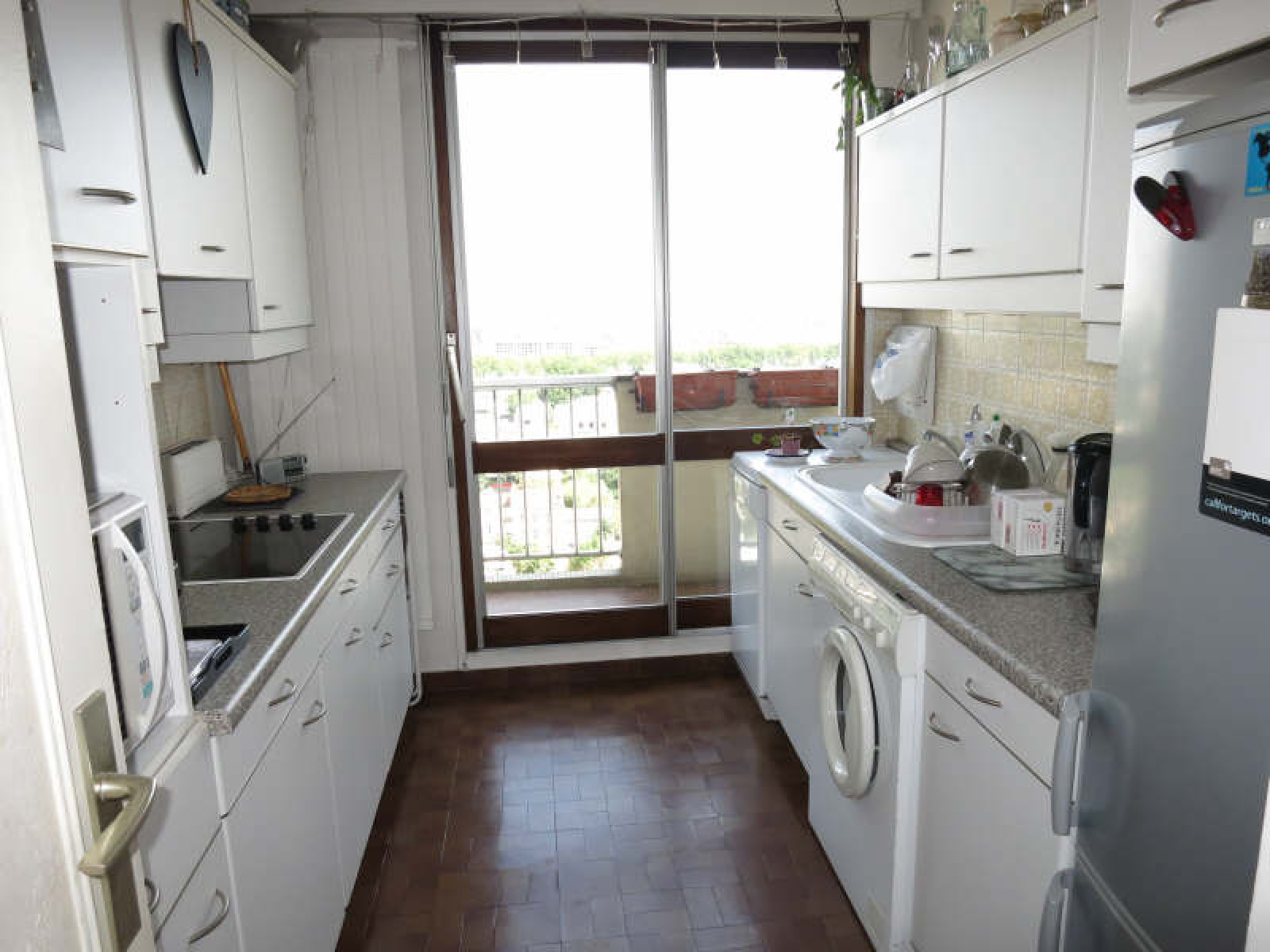 Au 7ème étage avec ascenseur, appartement rénové comprenant entrée, cuisine aménagée et équipée avec balcon, grand séjour, loggia, dressing, 2 chambres avec balcon, salle de bains, wc avec lave-mains.~Cave. Place de parking en sous-sol.~Possibilité d'acquérir un box.~Tramway, gare et commerces à pied. Très belle vue.~Réf 2543