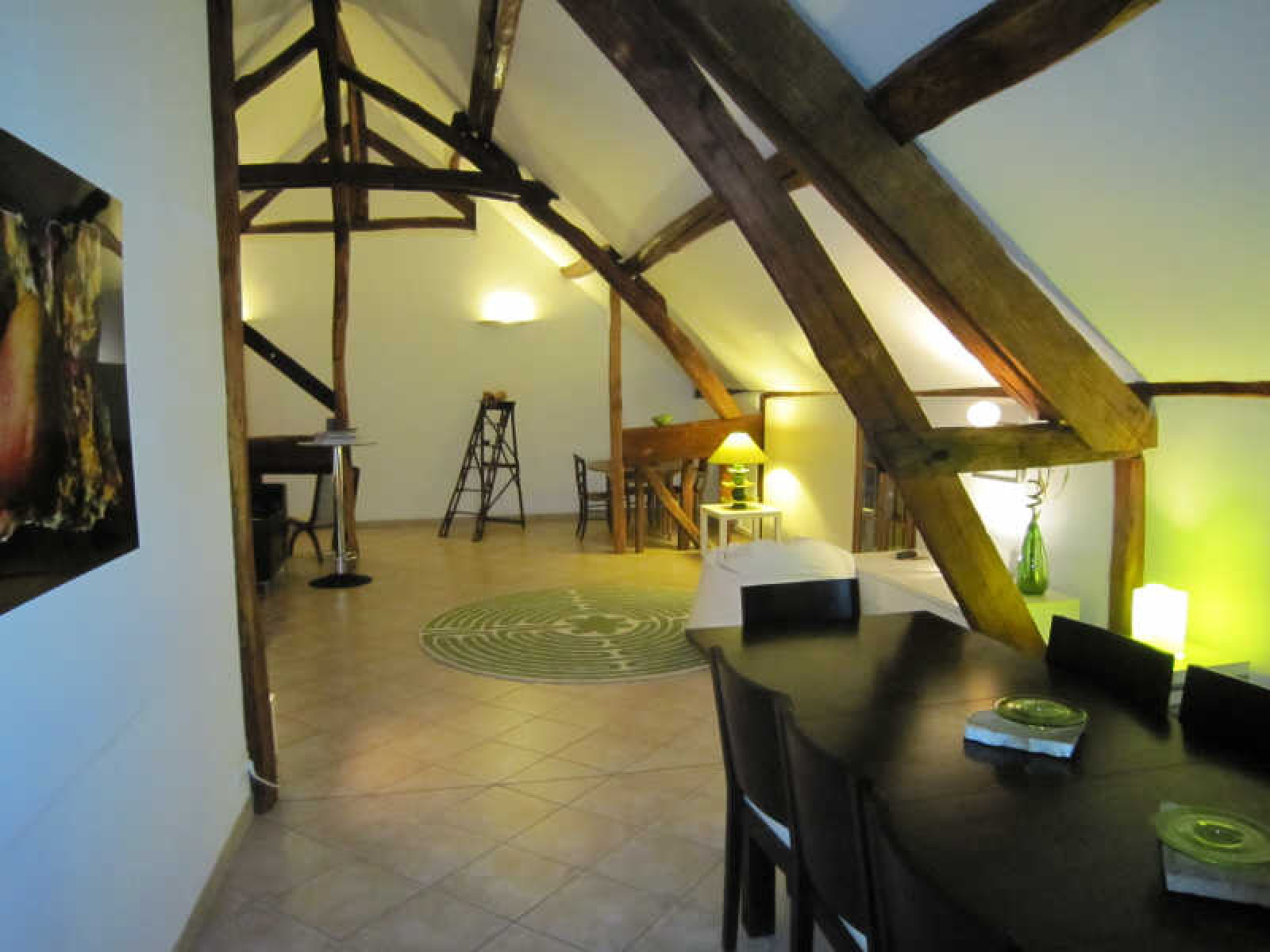 Au premier étage, appartement rénové style loft comprenant entrée, grand séjour, salle à manger, cuisine aménagée, 3 chambres dont une avec mezzanine, bureau avec petite mezzanine, buanderie / chaufferie, salle de douche, wc.~Place de parking.~Beaucoup de charme. ~Réf 1077
