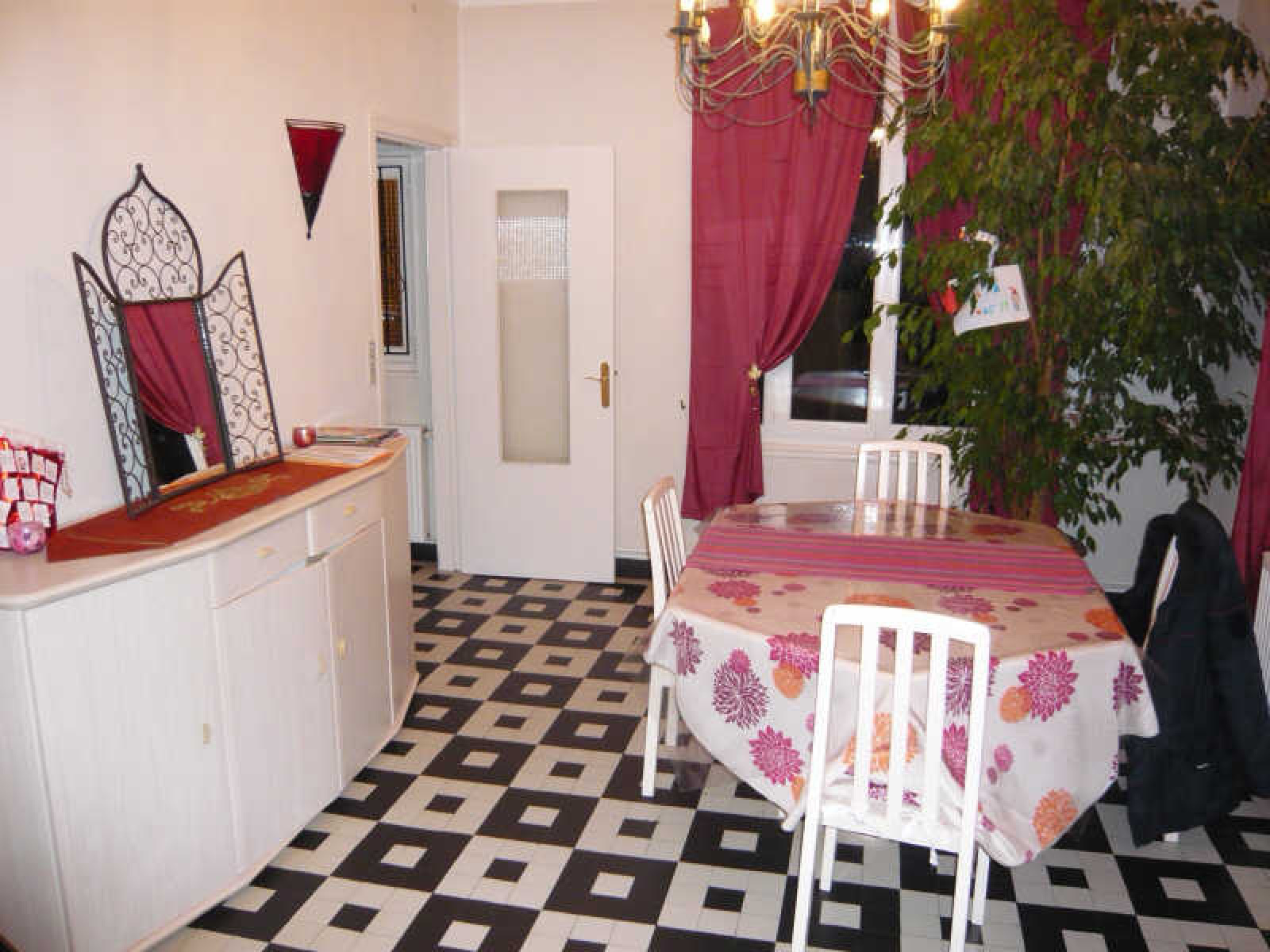Maison ancienne comprenant entrée, salle à manger, cuisine aménagée et équipée avec coin repas, véranda, salon, wc.~1er étage : palier, 2 chambres, salle de bains.~2nd étage : 2 chambres.~Garage, buanderie. Terrain clos d'environ 700 m².~Réf 1001