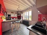 Maison ancienne rénovée comprenant entrée, salon avec poêle à granules, salle à manger, cuisine indépendante aménagée, salle de bains avec douche à l'italienne et coin buanderie, wc.