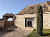 Maison ancienne comprenant entrée, grand séjour avec poêle à granules, cuisine américaine aménagée, salle de douche avec wc.